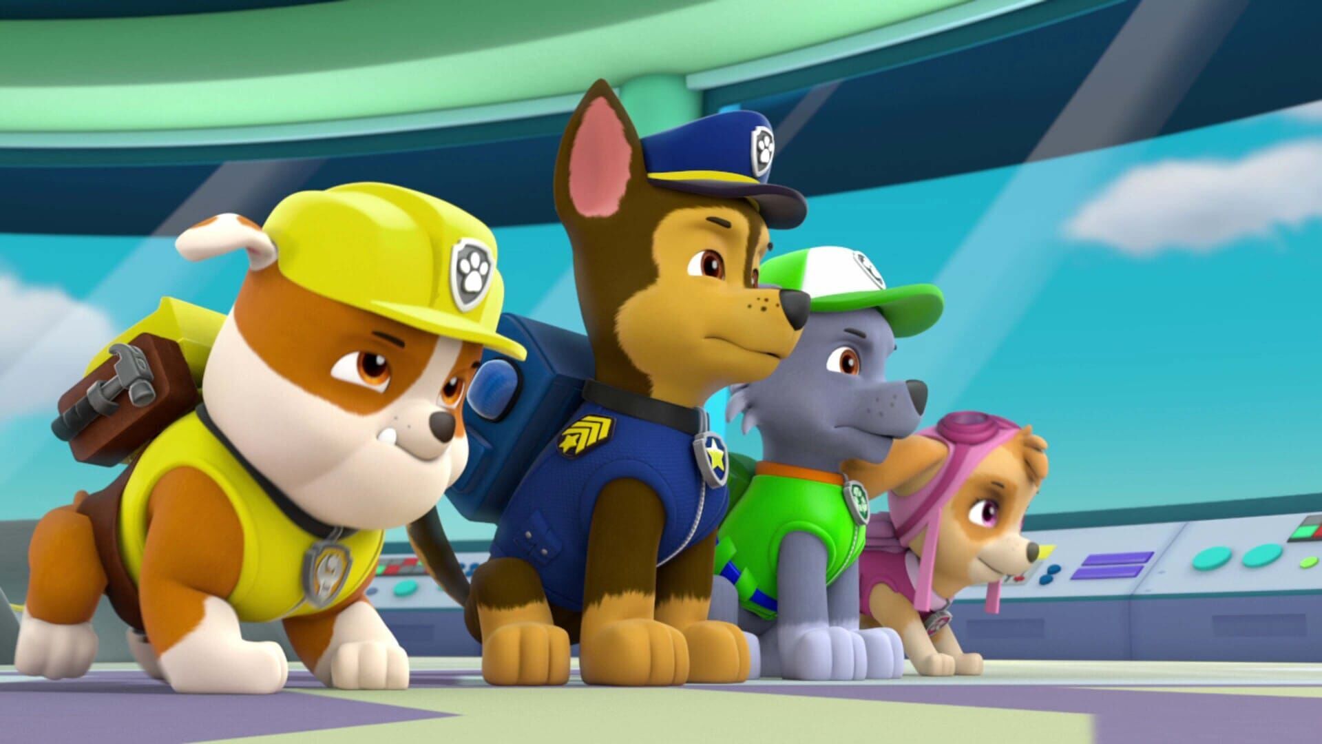Ryder ist Einsatzleiter eines Rettungs-Team von Hunde-Welpen. Sie sind die Helden der Abenteuer-Bucht. Mit Mut, Verstand und Fahrzeugen helfen die Fell-Freunde Menschen und Tieren in der Not. Jedes Mitglied der Pfoten-Patrouille hat eine besondere Fähigkeit. Schäferhund Case ist ein furchtloser Polizei-Hund. Dalmatiner Marshall ist ein tollpatschiger Feuerwehr- und Ersthelfer-Hund. Die Pilotin Skye, ein Cockaboo, fliegt einen Hubschrauber. Schweres Gerät ein Fall für Bulldogge Rubble. Mischling Rocky kümmert sich um Recycling und Müll-Beseitigung. Labrador Zuma ist Wasserrettungs-Hund und Husky Everest ist in der Bergrettung im Einsatz. Zusammen erleben sie spannende Missionen und gefährliche Abenteuer, wobei sie die Pläne des hinterlistigen Bürgermeisters durchkreuzen.