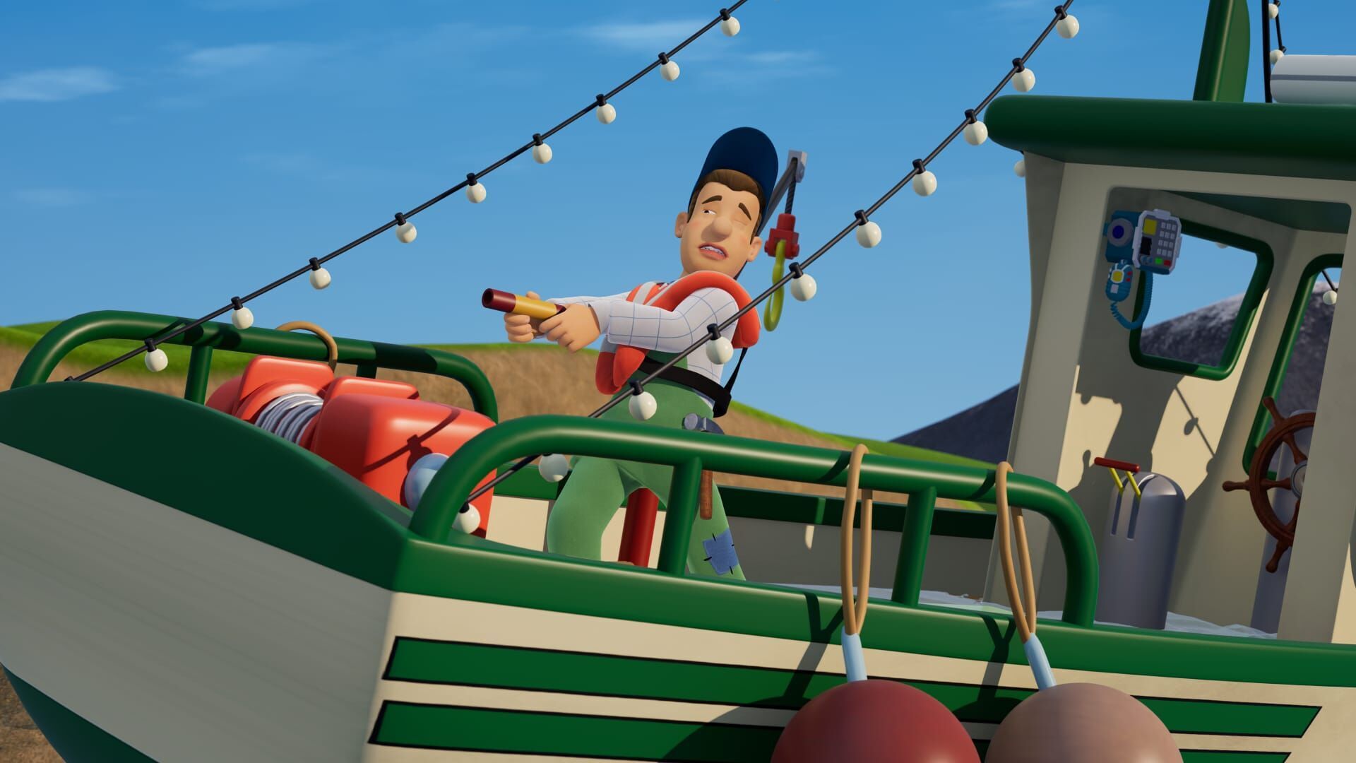 Die Jagd nach dem Fleckenrochen: Hannah, James, Norman und Sarah sind mit Jodie, der Schwester von Ellie, an der Küste vor Pontypandy unterwegs. Jodie ist Meeresbiologin und möchte versuchen, einen Fleckenrochen zu entdecken. Diese Tiere sieht man bei Pontypandy äußerst selten. Auch Charlie und Mike möchten einen Fleckenrochen finden. Doch als Charlie das Steuer seines Fischerbootes Mike überlässt, fliegt er von Bord und das Boot schlägt an den Felsen leck. Die neue Feuerwache: In Pontypandy wird die neue Feuerwache eröffnet! Katy Knüller ist vor Ort, um das große Ereignis zu filmen. Neben modernster Technik gibt es auch eine coole Rutsche, die die Feuerwehrleute schnell zum Löschzug bringt. Doch dann passiert ein Notfall: Dilys setzt ihren Laden beim Bügeln in Brand! Sam und sein Team müssen schnell handeln, damit Norman rechtzeitig und ordentlich für die "Katy Knüller Show" bereit ist.
