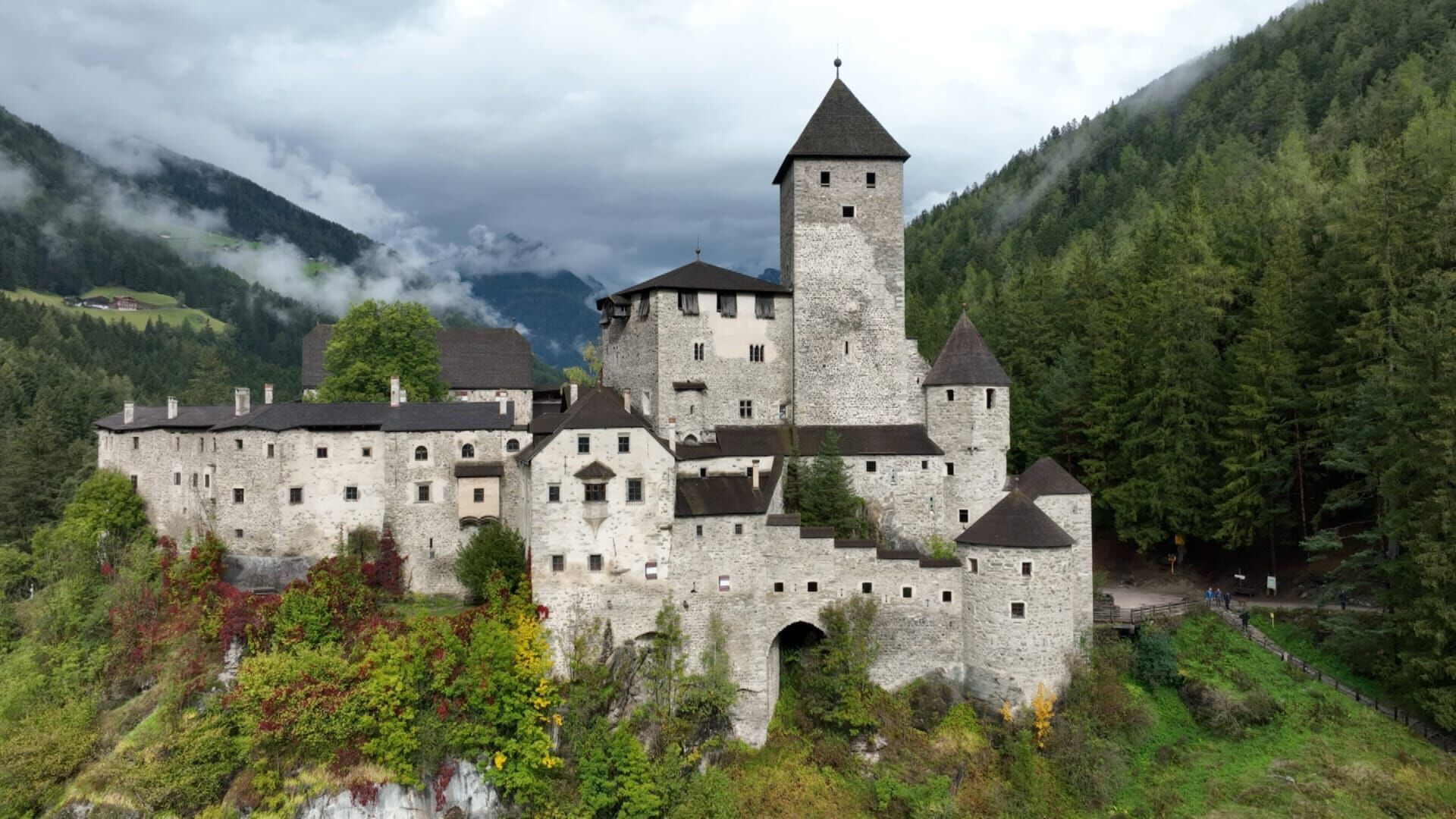 Sie handeln von Narren, die die Welt regieren, von Bergsteigerschicksalen und ruhlosen Burggeistern - die Geschichten in Südtirols Burgen und Schlössern sind gleichsam bunt wie geheimnisvoll. * Vom Vinschgau bis ins Ahrntal - in Südtirol sind die Anzahl und Dichte an Burgen und Schlössern so hoch wie kaum sonst wo in Europa. Gepflegt und belebt werden sie von Menschen, die Verantwortung spüren, nicht nur für das Erbe ihrer Ahnherren, sondern für das ganze Land. * Wenn der Sommer dem Herbst weicht, werden sie in ein außergewöhnliches Licht gerückt: Südtirols Burgen und Schlösser stehen nun in der Auslage. Im Vinschgau im äußersten Westen des Landes ist für Johannes Trapp die Zeit der Obsternte angebrochen. Vom Frühjahr bis in den Herbst lebt er auf der Churburg über Schluderns, die seit mehr als 500 Jahren im Besitz seiner Familie ist. Der "Herr Graf", wie er im Ort genannt wird, kümmert sich auch persönlich um die Führungen durch die um 1259 errichtete Burg. Weiter östlich im Burggrafenamt rund um die Stadt Meran befindet sich Schloss Schenna. In dem um 1350 erbauten Baujuwel dreht sich alles um den Ahnherren der Grafen von Meran, den steirischen Prinzen Erzherzog Johann, der sich schon als Kind in das Tiroler Land verliebt hatte. Hier wollte er begraben sein. Der heutige Schlossherr Franz Spiegelfeld begegnet dem Wirken seines Vorfahren und dessen Verdiensten mit dankbarer Demut. Von herausragender Bedeutung für das ganze Land ist Schloss Tirol. Die im 11. Jahrhundert errichtete Anlage in Dorf Tirol gilt als Wiege der Grafschaft Tirol. Heute beherbergt sie das Südtiroler Landesmuseum für Kultur- und Landesgeschichte. Der Museumsdirektor und Kunsthistoriker Leo Andergassen präsentiert hier eine mittelalterliche Bilderwelt, die ihresgleichen sucht. Am Fuße von Schloss Tirol ist die Brunnenburg ein weiterer architektonischer Blickfang. Die hochmittelalterliche Hangburg wurde um 1250 zur Absicherung des Weges erbaut. Heute lebt und wirkt Siegfried De Rachewiltz in den verwinkelten Gemäuern. Der Kulturhistoriker und Schriftsteller ist der Enkelsohn des amerikanischen Dichters Ezra Pound, der auf der Brunnenburg zwischen 1958 und 1962 gelebt hat: hier wollte er sein Hauptwerk "Die Cantos" beenden, hier haderte er aber auch mit seiner Vergangenheit als Unterstützer des italienischen Faschismus. Über dem Südwesten des Bozener Talkessels thront die Festungsanlage von Schloss Sigmundskron - auch Firmian genannt. Sie ist ein symbolischer Ort für die Südtiroler Zeitgeschichte. Heute beherbergt Sigmundskron das Herzstück der Museenwelt von Reinhold Messner. Die Südtiroler Bergsteigerlegende hat sich hier einen Traum erfüllt. Geführt wird das Haus von Messners Tochter Magdalena, die in den Jahren ihrer Kindheit mit den Geschichten über die waghalsigen Expeditionen ihres Vaters zu Bett gebracht wurde. Seit dem 13. Jahrhundert wacht Burg Taufers auf ihrem felsigen Thron über dem Eingang zum Ahrntal. Der Castellan Alexander Maier setzt bei seinen Führungen durch die einstmalige Dynastenburg der Herren von Taufers vor allem auf Humor. Ob bei der Schilderung der grausamen mittelalterlichen Rechtsprechung im ehemaligen Gerichtssaal oder beim Hinweis auf knarrende Spukerscheinungen im sogenannten Geisterzimmer - stets serviert er die Geschichten in den mystischen Mauern mit einem Augenzwinkern. Eine Dokumentation von Fritz Aigner