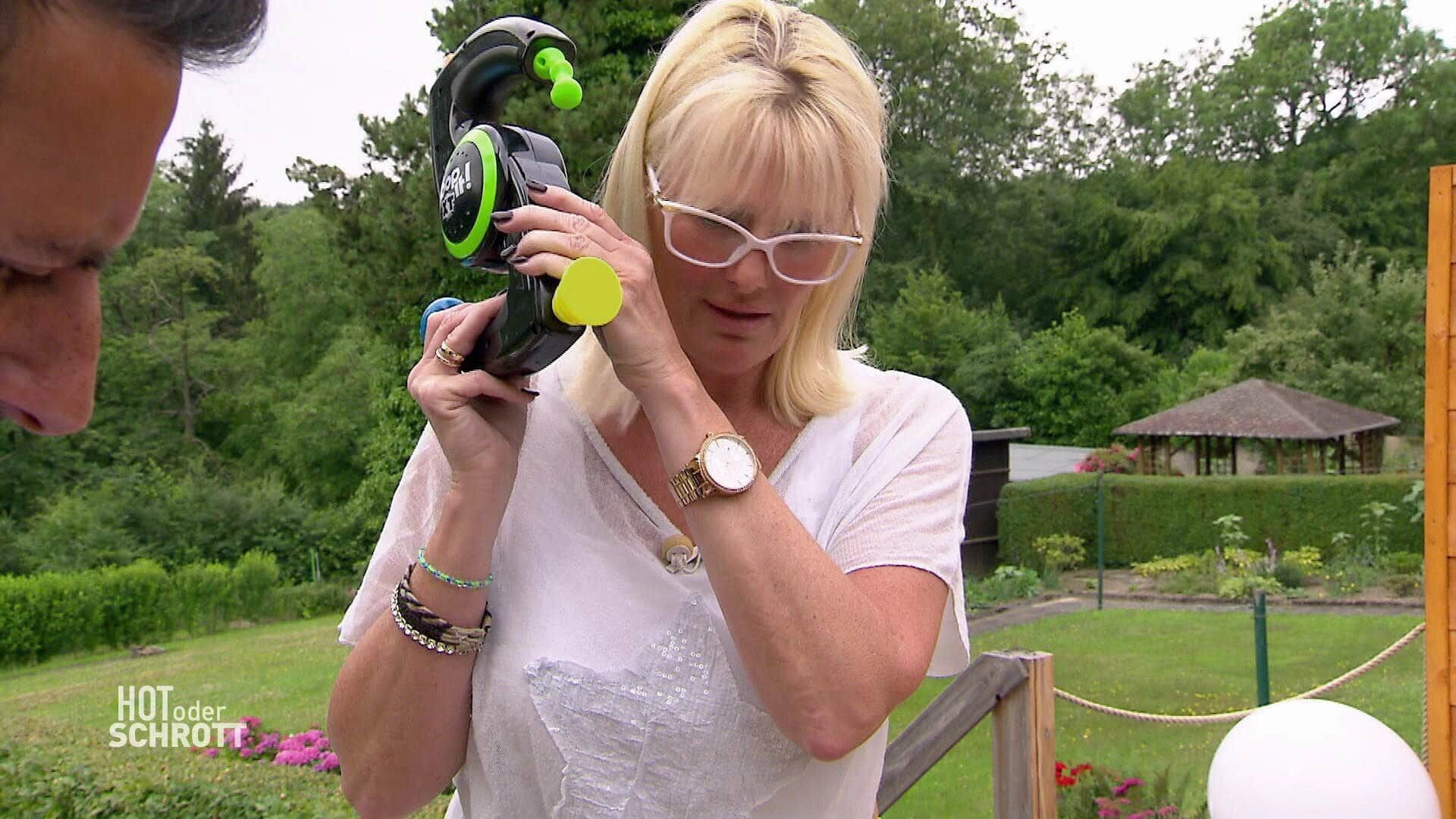 "Venen Engel - Gleitwellenmassage": Das perfekte Gerät bei schweren Beinen und für Wellness in den eigenen vier Wänden? Der "Venen Engel" verspricht Wohlbefinden im Beinbereich und genussvolle Entspannung dank Druckwellenmassage. Die Beinmanschetten sollen per Reißverschluss einfach anzulegen sein und eine sichere Benutzung ermöglichen. Anwendungsintensität und -dauer sollen sich stufenlos regulieren lassen. Allestesterin Steffi ist dennoch skeptisch ob der erholsamen Wirkung des "Venen Engels" und traut sowohl dem Produkt als auch ihrem Mann Roland bei der Bedienung nicht über den Weg. "Popin' Cookin' DIY Hamburger Set": Wenn der kleine Hunger kommt, dann scheint die Zeit genau richtig für einen schmackhaften, schnellen Snack zwischendurch. Mit dem Do-It-Yourself Hamburger-Set soll man sich in sieben Anwendungsschritten ein komplettes Fastfood-Menü zaubern können - allerdings im Miniaturformat! Das Set enthält Zutaten und Hilfsmittel für einen Mini-Hamburger, Mini-Pommes-Frites und eine Mini-Cola. Ob Detlef & Nicole, Andreas & Kathrin sowie Ingrid & Otto aus der japanischen Anleitung schlau und am Ende auch satt werden? "Hydroshot - Mobiler Hochdruckreiniger": DAS mobile Multitalent für die Reinigung und Bewässerung aller Außenbereiche am Haus? Der "Hydroshot" soll sowohl als Hochdruckreiniger als auch als Wassersprüher nutzbar sein und will besonders mit einem Vorteil punkten: Er braucht weder einen Strom-, noch Wasseranschluss in der Nähe. Der tragbare Helfer für Garten und Hof wird nämlich per Akku betrieben und kann Wasser aus jeder beliebigen Quelle (z.B. aus einem Eimer) beziehen. Die Akkulaufzeit beträgt laut Hersteller 15 Minuten im Dauerbetrieb und unter Höchstleistung. Also: Akku rein und Wasser marsch, liebe Allestester! "Bop lt. XT": Bei diesem Produkttest geraten Detlef & Nicole aus Moers, die vier Kölner Studentenfreunde und Roland & Steffi aus Wuppertal an die Grenzen ihres Reaktionsvermögens. Denn beim elektronischen Aktionsspiel namens "Bop-It XT" gilt es, so schnell wie möglich auf die fünf zufällig ertönenden akustischen Befehle - "Bop-It", "Twist-It", "Pull-It", "Flick-It" und "Spin-It" - auf vorgegebene Weise zu reagieren. Mit fortschreitender Spieldauer werden die Befehle in immer schneller werdender Geschwindigkeit erteilt. Eine harte Probe für die mentalen Fähigkeiten der Allestester. Wer kann bei diesem Tempo mithalten und alle Befehle richtig ausführen? Und macht's denn auch Spaß?