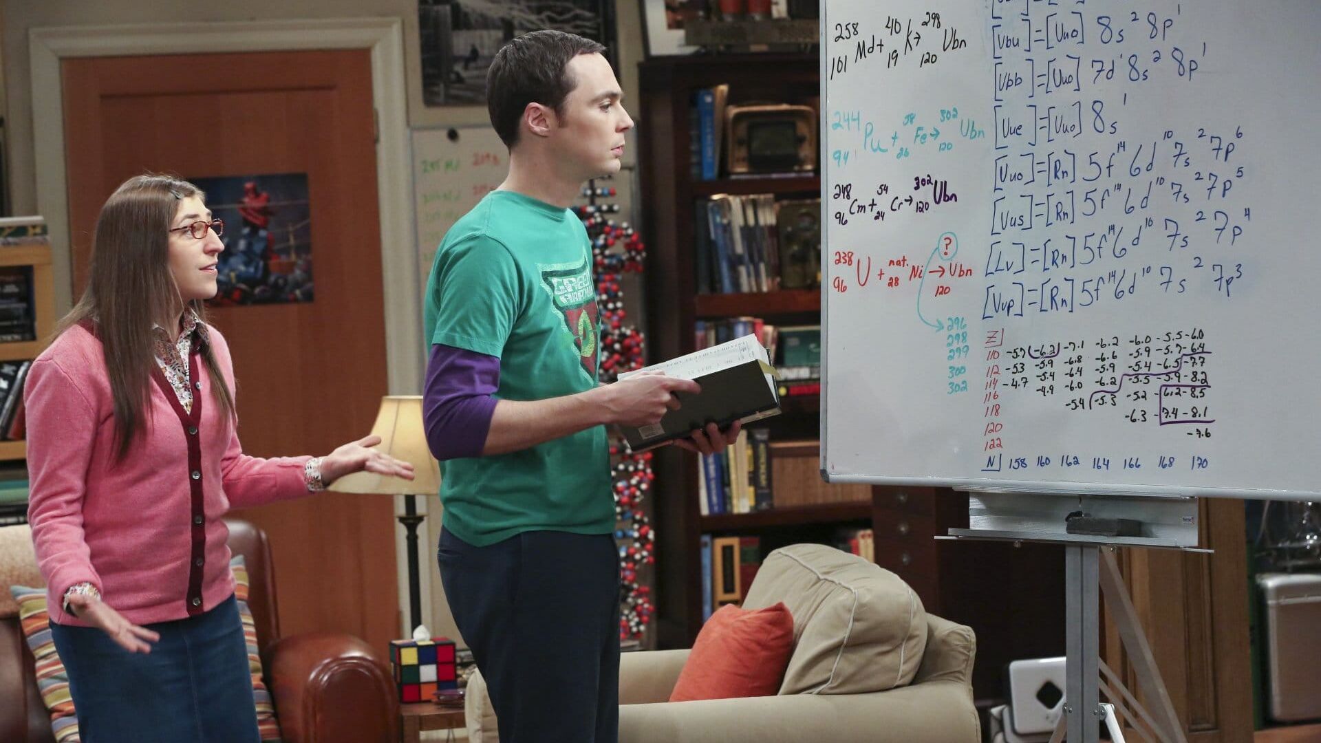 Howard plant anlässlich des Jahrestages seines ersten Dates mit Bernadette eine romantische Überraschung: Er hat einen Song geschrieben, den die Clique musikalisch begleiten soll. Daraufhin entwickelt Penny den Ehrgeiz, Leonard auch mit einer romantischen Aktion zu beeindrucken. Allerdings will ihr nichts Tolles einfallen ... Sheldon entdeckt unterdessen ein neues Element und dreht wegen des Erfolges durch. Doch dann stellt sich heraus, dass sein Fund purer Zufall war ...