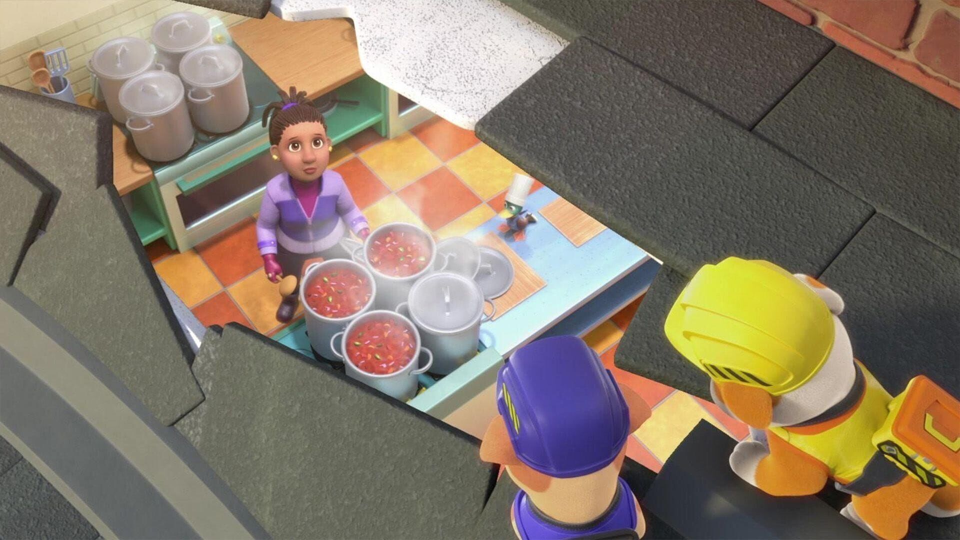In Bau-Bucht will Bürgermeisterin Großherz ein Chili-Koch-Fest ausrichten, als das Rathausdach unter dem Gewicht eines Adler-Nests einzustürzen droht. Die Bauhunde Rubble, Wheeler und Charger eilen zu Hilfe: Während Rubble und Mix das Dach reparieren, finden Wheeler und Charger einen neuen Platz für das Nest der Adler-Dame Adele und ihrer Eier.