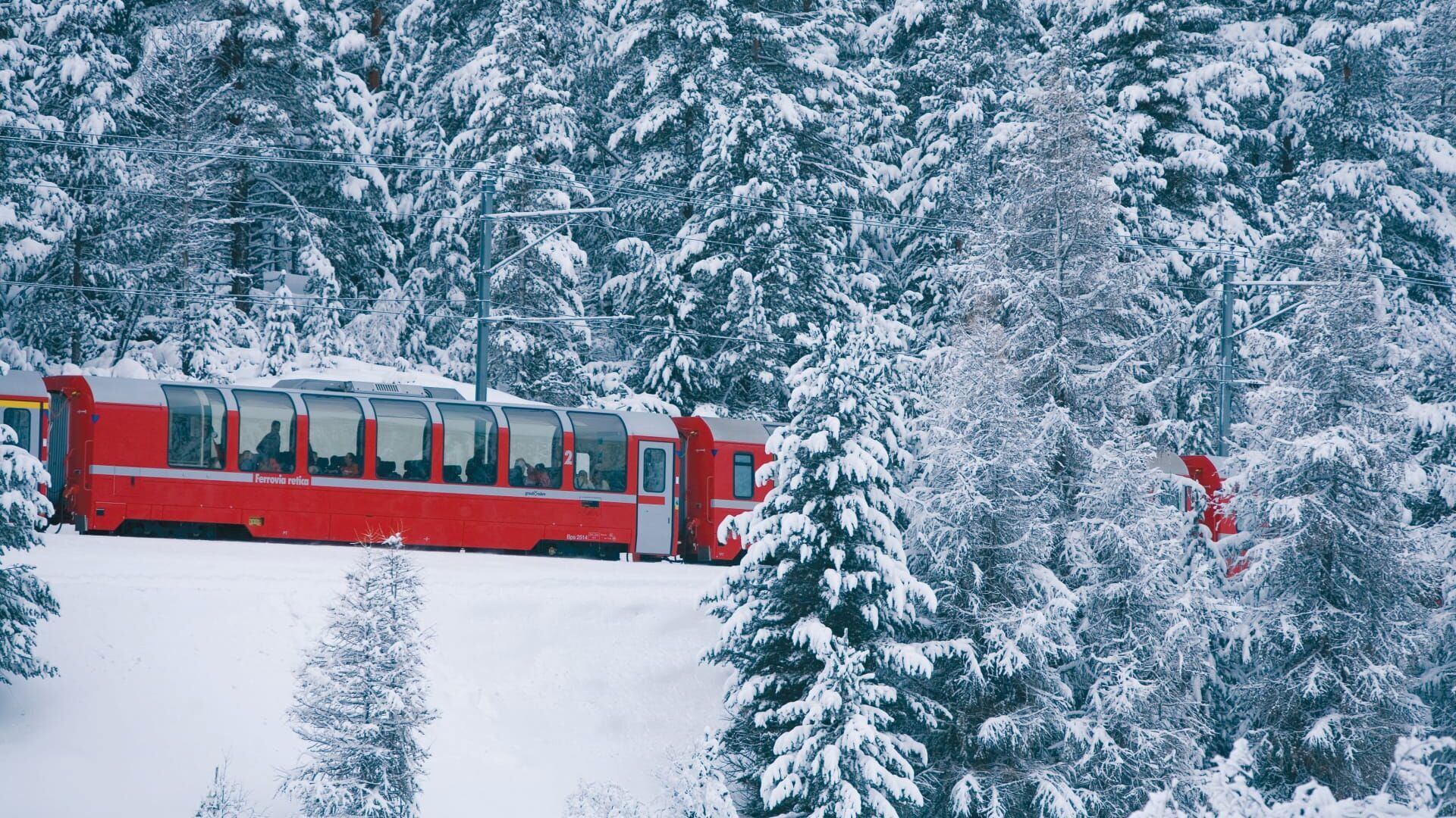 Sie gilt als schönste Bahnfahrt der Welt: die Alpenüberquerung mit dem "Bernina Express". Unterwegs kann man spektakuläre Landschaften und architektonische Meisterwerke genießen. Bergseen und Gletscher ziehen an den Fenstern vorbei, und im nächsten Augenblick säumen Palmen die Trasse der Rhätischen Bahn, und Italianità macht sich breit. Die Strecke der Albula- und Berninabahn ist als UNESCO-Weltkulturerbe ausgezeichnet. Auf der Fahrt von Chur nach Tirano fährt die Bahn über 196 Brücken und durch 55 Tunnel. Einer der Höhepunkte ist der 65 Meter hohe Landwasserviadukt, der in einen Tunnel mündet. Für die 144 Kilometer lange Strecke von Chur ins italienische Tirano braucht der Zug vier Stunden.